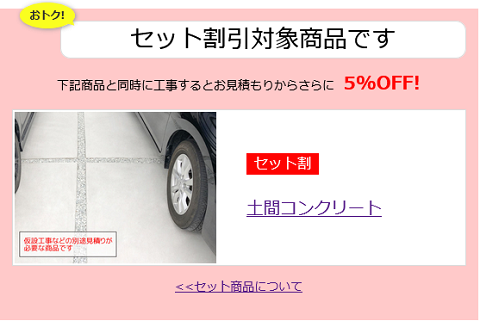 セット割対象商品の商品ページには下記のご案内を表示しております