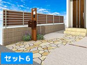 セット5:乱形石張り +木製調フェンスAB YS3型 +化粧ブロック シャモティ