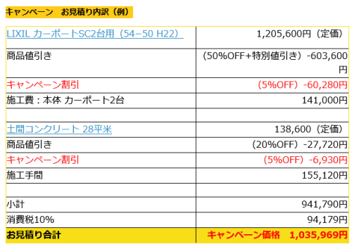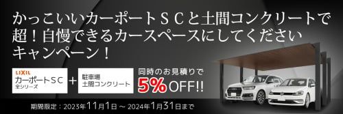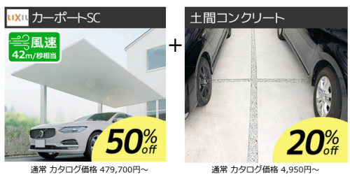 カーポートSC(全シリーズ)と土間コンクリートの同時購入で商品代よりさらに5%お値引きさせて頂きます!