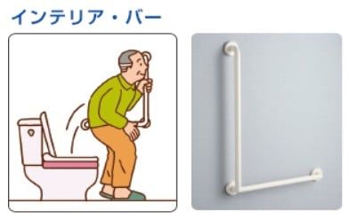 インテリア・バー・・L字型バーをつければ、立ち座りの動作をしっかりサポートしてくれます