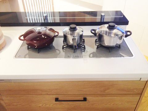 3つ横並びのスタイルで、手前のスペースも有効活用できるら作業がラク♪