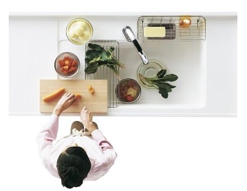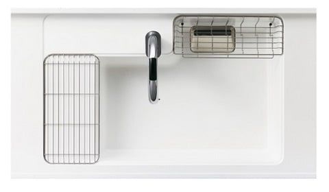 実際の主婦の声を採用した作業性の高いシンク。シンクとカウンターを一体成型にすることで