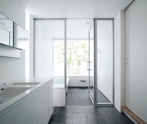 全面開口で内・外とつながる開放的なバスルーム。