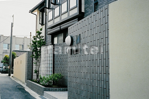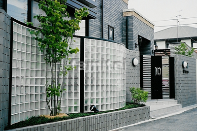 前面道路と建築の間が、無いにも拘らず完全なプライベートと日差しと空間がご希望でした。目的にあったデザインにするため、門まわり3つのRでデザイン。塀は特注のRフレームの中にガラスブロックを埋め込ませることで、吐出し窓に入る明かりと見た目の奥行きを演出。夜になるとライトアップされた門まわりは、時を経た現在でも、圧巻の存在感あるところが評価となりました。日本一、ありがとうございます。