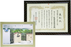 かわいいプラン門まわりのデザインに、エクステリアはロートアイアン調をセレクトしデザインの調和を大事にしてデザインしたことが評価されました。これからも、もっと切磋琢磨して「生活の上に成り立つデザイン}を目指しますありがとうございました!!