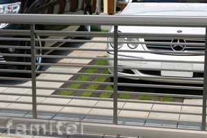 車庫面には、目立たないデザインタイルと1本の質感の違うアンティークタイルと不均衡なウリン材とグリーン面。配置のバランスと空間を、最も大事に、忠実に再現したつもりのファミテイとお客様の拘りの共同作品です。外構デザインを植栽でごまかすこともしてません。ナチュラルモダンな質感に拘りました。