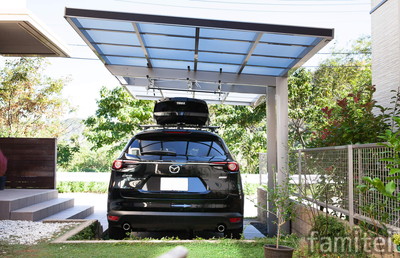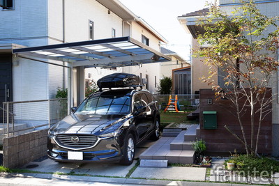 車の購入と合わせて駐車場にカーポートを設置しました。シンプルでモダンなデザインが車のイメージとマッチし、イメージ通りの駐車スペースを完成させることができました。車がないときは邪魔になる柱もなく広々使えることも好評です。