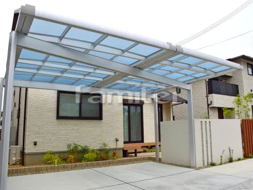 カーポート 三協アルミ Uスタイル 梁置きタイプ 片寄せ納まり 横2台用(ワイド ツイン) F型フラット屋根