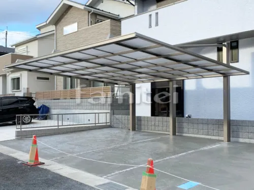 • カーポート 三協アルミ ダブルフェース 横2台用(ワイド ツイン) F型フラット屋根 背面支持タイプ アルミたて樋 偏芯基礎部品セット