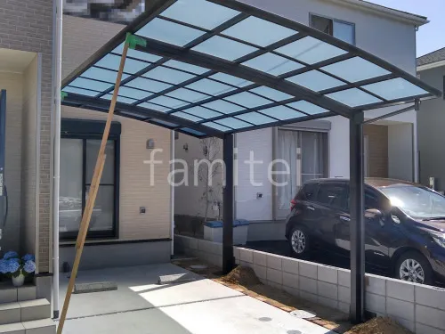 早目に見積り依頼をしてしまい、約2ヶ月以上間があいてしまいましたが、待ちに待ったカーポートで外構が完成しました。カーポートやサイクルポート、黒の柱にして、外観も気に入ってます。ありがとうございました。