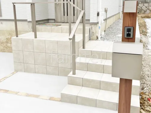 玄関アプローチ階段 床タイル貼り LIXIL パセオ 手摺り(手すり) アーキレール