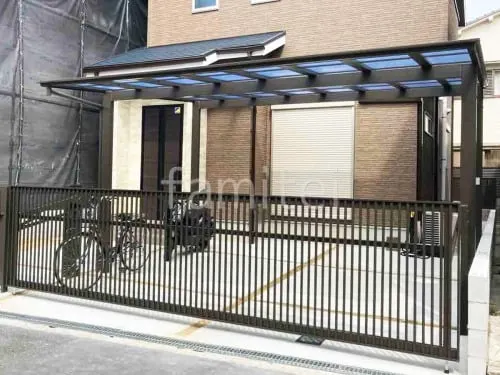 モダン門柱 壁タイル貼り LIXIL セラヴィオ 郵便受けポスト Panasonic 口金ポストMS 玄関門扉 AB TR2型 片開き