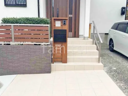 玄関アプローチ階段 床タイル貼り LIXIL グレイスランド 手すり アーキレール