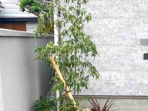 • 和風坪庭 イロハモミジ ツバキ 目隠しフェンス塀 タカショー e-バンブーユニット 建仁寺垣