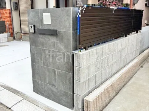 モダン門柱 壁タイル貼り タカショー セラレバンテ 郵便受けポスト YKKAP エクステリアポストG3型