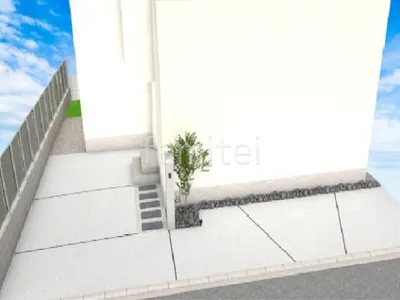 ご自宅のシンプルナ雰囲気と合うよう玄関アプローチに土間コンクリートと踏み石ステップを施工しました。 ご自宅の基礎沿いに割栗石を積みをアクセントとして配置しました。玄関側の境界に目隠しフェンスを設置しました。お庭に人工芝と人工木ウッドデッキを施工し天気の良い日に寛ぐ空間として活用できます。