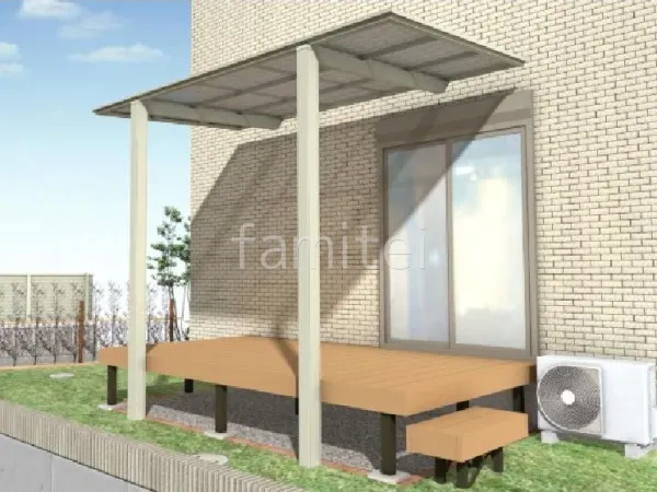 日差しの強い日や雨でもウッドデッキを快適に使用できるように1階テラス屋根 LIXIL 独立式フーゴFテラス を設置し、道路からのお庭への視線を遮る目隠しフェンスを設置しました。フェンスを設置する際に擁壁上に化粧ブロックを2段設置しました。道路からの視線も気にせずお庭がより快適な空間になりました。