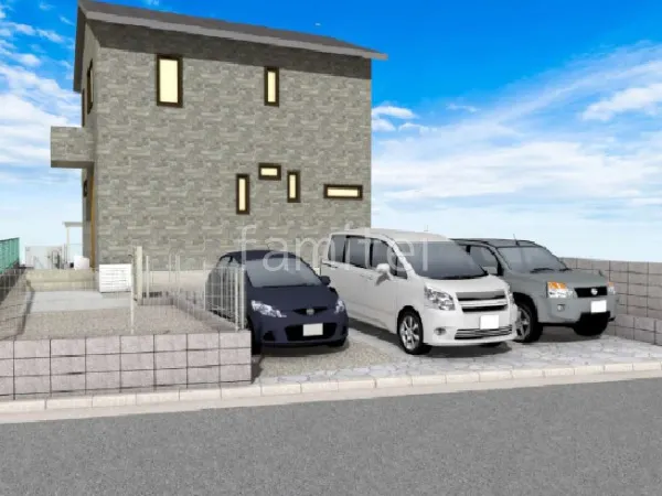 駐車スペースを広く取った新築ベーシック セミクローズ外構