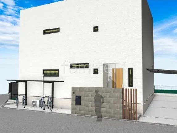 タイル貼り門柱を広くすることで玄関扉を開けても外からの視線を遮る事が出来ます。また、玄関へのアプローチ階段をカーポート側に施工する事でお車からご自宅への移動もスムーズに行えます。門柱隣のスペースに土間コンクリートとサイクルポートを施工する事で自転車が雨に濡れる事を防ぎご自宅へのお荷物の移動も簡単です。