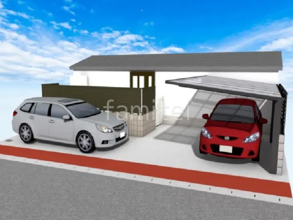 玄関回りのプライバシー確保のため、目隠しフェンス塀 LIXIL AB YL2型 化粧ブロック積 ユニソン シャモテイ で玄関回りを囲いました。また、玄関ポーチ近くに門扉 LIXIL AB YL2型 片開きを施工し玄関への動線を確保しました。駐車スペース床に土間コンクリートを施工しました。