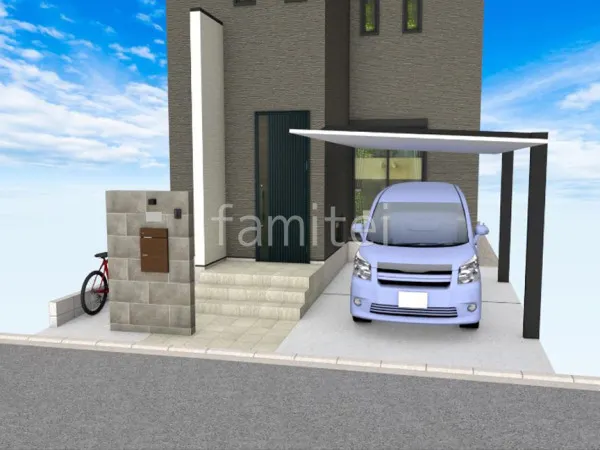 タイル門柱 玄関アプローチ階段 床タイル貼り 駐車場ガレージ床 土間コンクリート カーポート1台