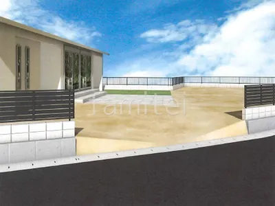 境界には二種類のフェンスを使用しています。目隠ししたい部分にはLIXIL フェンスAB YS3型を、そうでない部分にはYKKAP シンプレオフェンスT2型を使い分けることで、コスト削減にも繋がります。お庭にはタイルデッキ 東洋工業 グルエッソを設置し、人工芝と共に憩いの場としてご使用いただけます。