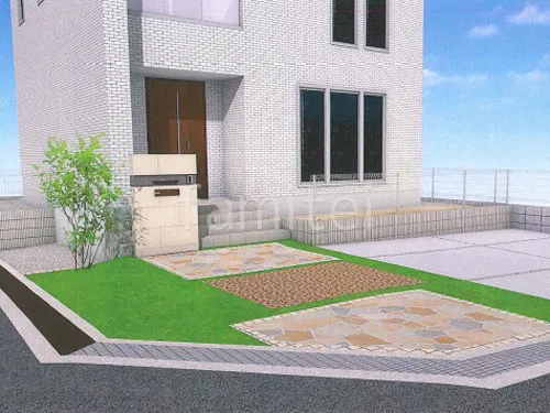 乱形石アプローチがアクセントになった新築シンプル オープン外構