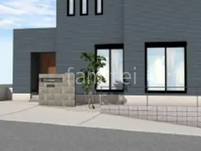 外壁に打ち付けしない独立式テラス屋根で安心して雨除けできる新築シンプル オープン外構