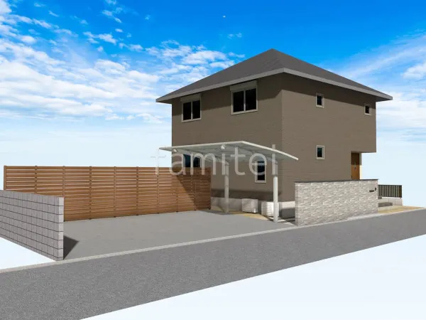 石貼り門柱が優しい雰囲気の新築シンプル オープン外構