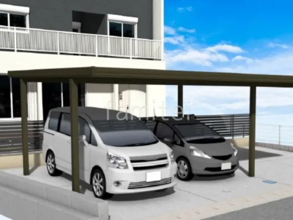 コンクリート枕木を使用したアプローチは、温かみのある雰囲気があります。 アプローチの隣には天然芝とウッドデッキ LIXIL 樹ら楽ステージを設置してリラックスできるスペースを作りました。 駐車場は折半屋根のカーポート LIXIL カーポートSWを設置して、雨だけでなく強風や雪からも車を守ります。 お庭と駐車場の間には目隠しフェンスを設置してプライバシーも確保した外構プランになっています。