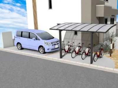 玄関からのアプローチには乱形石を採用し、ナチュラルな雰囲気にしました。 コンクリートの目地材もレンガにして、自然な印象をプラスしています。 駐輪場にはサイクルポート YKKAP アリュースを設置して、雨風から自転車を守ります。 お庭には手入れが簡単な人工芝を敷き、一年中美しい緑を保ちます。 掃き出し窓の部分に階段を設置することで、お庭とお家の出入りが簡単にできるようになりました。 また目隠しフェンスを採用することで、プライバシーを確保し、お庭空間を快適に過ごせます。