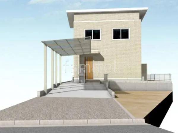 駐車場は旗竿地の地形を活かして、縦2台カーポート LIXIL ネスカFを設置しました。 お庭には大きなウッドデッキ YKKAP リウッドデッキを設置し、お庭全体に人工芝を敷くことで、メンテナンスフリーで一年中緑を楽しむことができるお庭にしました。 建物横の犬走り部分は防草シートと砂利を敷いて雑草対策もバッチリです。