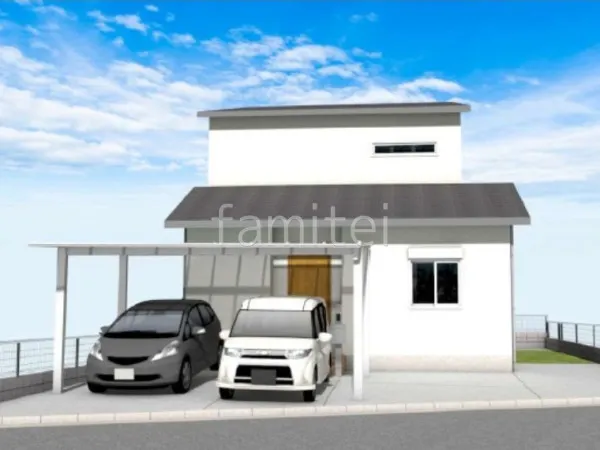 駐車場には敷地にあわせて前枠をカット加工した2台用カーポート YKKAP エフルージュFIRSTを設置し、最大限に駐車スペースを確保し、車を保管できるようにしました。 玄関まわりには機能門柱 LIXIL アクシィ1型を設置し、コンパクトながらも利便性の高いエントランスに仕上げています。 お庭には人工芝を敷き、メンテナンスフリーで自然な緑を楽しむことができるようにしました。