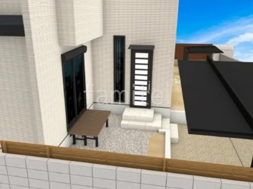 駐車スペースに2台用カーポート LIXIL 木製調カーポートSC、駐輪スペースにはサイクルポート LIXIL カーポートSCミニを設置し、木調で温かみのあるデザインで車や自転車を保護します。 駐車場には跳ね上げゲート LIXIL オーバードアS4型を新設し、防犯性と利便性を向上させました。 駐車場の土間は洗出しを採用し、耐久性と美しさを両立させました。 お庭や駐車場の周りには目隠しフェンス 木製調AA YL1型やYKKAP 木製調ルシアスH13型を設置し、プライバシーを確保しています。 またお庭にはウッドデッキ YKKAP リウッドデッキと人工芝で快適なアウトドア空間を作りました。 アプローチには乱形石を使用し、自然で高級感のある仕上がりにしました。