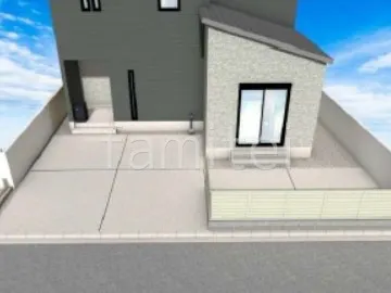 お庭スペースを目隠しフェンス LIXIL AB YS3型で囲い、プライバシーを確保して快適に過ごせる空間を作りました。 また、表札とインターホンを取り付けた機能門柱 YKKAP シンプレオポストユニット1型を設置し、利便性の高いエントランスにしました。 建物周りは防草シートと砂利を敷いて、コスパ良く雑草対策を施しています。