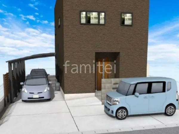 縦2台用カーポートで車を保護する新築ベーシック オープン外構