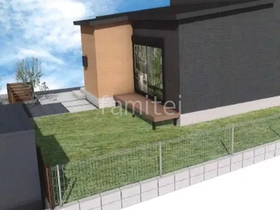玄関階段に浮遊階段加工を施し、モダンな雰囲気を演出します。 また、目隠しフェンス F&F マイティウッドデコllはプライバシーを確保しつつ、木製調の温かみをプラスします。 お庭スペースにはメンテナンスが簡単な人工芝を敷き、1年中美しい緑を楽しむことができます。 さらに、ウッドデッキ LIXIL 樹ら楽ステージを設置することで、家族や友人と快適に過ごせるアウトドアスペースを作りました。