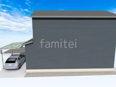 玄関からのアプローチに乱形石を使用し、自然な風合いで高級感のある仕上がりにしました。 また、駐車場に1台用カーポートYKKAP エフルージュFIRSTを設置し、車を雨や紫外線から保護します。 駐車エリア道路側は土間コンクリート仕上げを採用し、耐久性を上げ日常使いがしやすくなりました。