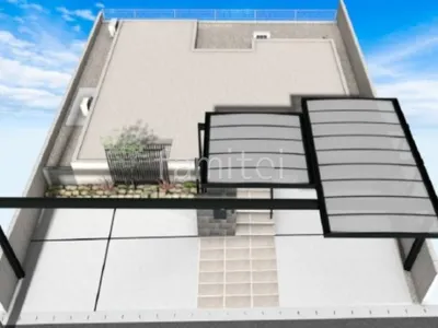 駐車スペースに3台用カーポート 三協アルミ Uスタイルアゼストを設置し、自由度の高い組み合わせで広々とした駐車スペースを確保しつつ、モダンなデザインで高級感をプラスしました。 アプローチには大判タイル 東洋石創 リジットを採用し、門柱は大判タイル タカショー セラレバンテを貼り仕上げ、モダンなデザインに仕上げました。 玄関階段は浮遊階段で立体的なデザインを取り入れ、手すり LIXIL アーキレールを設置することで安全性とデザイン性を両立しました。