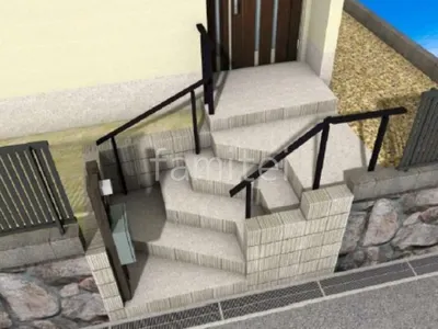 既存の玄関階段と門扉を撤去し、ゆとりある広さがある階段を新設し、昇降しやすく安全性も向上しました。 階段上には、シンプルな角柱門柱を設置し、コンパクトながらも利便性の高いエントランスに仕上げました。 また、手すり LIXIL アーキレールを設置することで、スタイリッシュなデザインと高い機能性で、年齢を問わず安心して利用できる動線を確保しました。