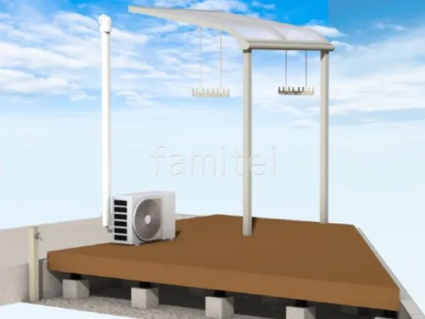 お庭スペースに敷地形状にぴったりと合うサイズのウッドデッキ YKKAP リウッドデッキ200を設置し、テラス屋根 YKKAP ソラリアRを組み合わせることで、屋外でのくつろぎや家族の団らんに最適な空間に仕上げました。 また、テラス屋根にはオプションで竿掛けを取り付けることで、洗濯物を干しやすくなりました。