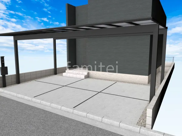 3台用カーポートがダイナミックな新築ベーシック オープン外構