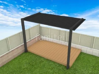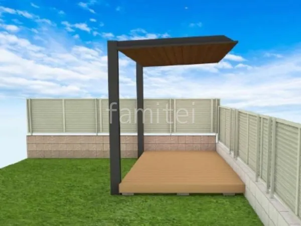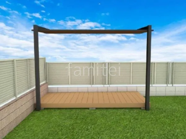 お庭に耐久性の高い人工木ウッドデッキ LIXIL 樹ら楽ステージとスタイリッシュなデザインの独立式テラス屋根 LIXIL 木製調テラスSCを設置することで、屋外空間をより快適に過ごせる憩いの場へと生まれ変わりました。