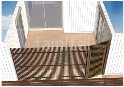 中庭スペースのプライバシーを確保するために目隠しスクリーンと片開き門扉 タカショー 千本格子を設置し、外部からの視線を遮りました。 中庭内にはシンボルツリーを植え、四季折々の表情を楽しめる癒しの空間に仕上げました。