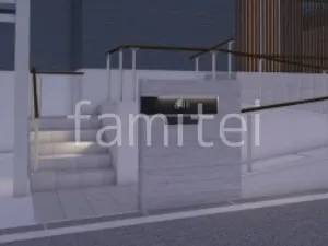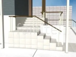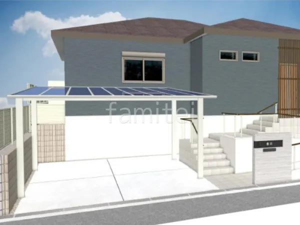 玄関に向かうスロープと手すり LIXIL UD手摺を設けることで、誰もが安心して出入りできるバリアフリー設計に仕上げました。 また、足元には照明 LIXIL フットライトを配置し、夜間の安全性を高めました。 エントランスには大判タイル タカショー セラウォールを採用した門柱を設置し、上質で洗練された印象を加えました。 駐車スペースには2台用カーポート YKKAP エフルージュFIRSTを設置することで、車をしっかりと保護します。 さらに、敷地境界には目隠しフェンス LIXIL AB YL3型を設置し、プライバシーを確保しました。