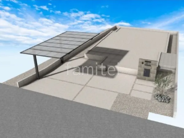 エントランスに大判タイル タカショー セラレバンテを貼り仕上げたタイル門柱を設置し、上質でモダンな印象を演出しました。 門柱付近には自然石を活かしたロックガーデンと、季節の移ろいを感じられるシンボルツリーを植え、玄関まわりに豊かな彩りを添えました。 また、駐車スペースに1台用カーポート LIXIL ネスカFを設置することで、スタイリッシュなデザインで雨や紫外線から車を守ります。