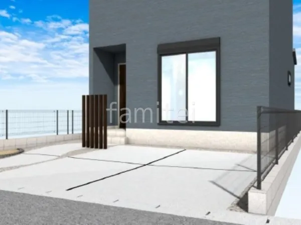 花壇と角柱でエントランスを彩る新築ベーシック オープン外構