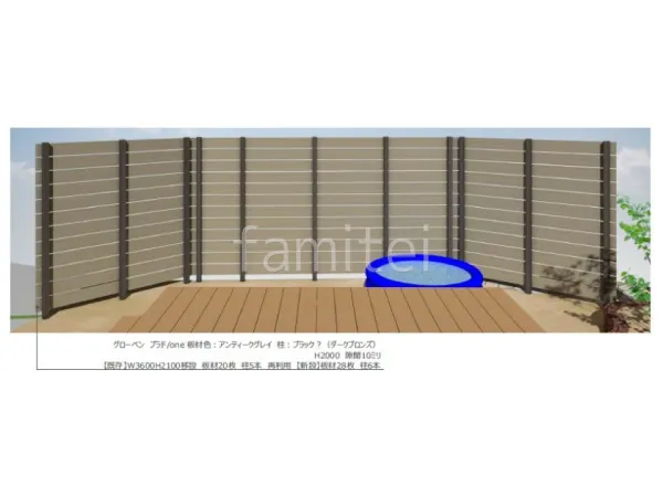ウッドデッキ周辺の既存目隠しフェンスを撤去し、庭全体を囲うように目隠しフェンス グローベン プラドoneを設置することで、外部からの視線をしっかり遮りながら、開放感のあるお庭空間に仕上げました。
