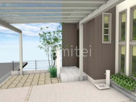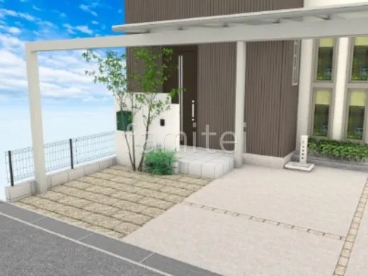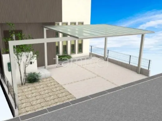 駐車スペースに2台用カーポート YKKAP エフルージュFIRSTを設置し、梁延長仕様にすることで開放感があり、また敷地条件に合わせて柔軟に対応でき、スムーズに車を出入りすることが可能になりました。