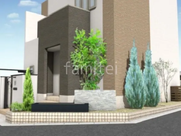 駐車スペースの洗出しと石材を撤去し、土間コンクリート仕上げと大判タイル 東洋石創 リジッドを貼り仕上げ、耐久性が向上し、モダンな印象に仕上げました。 また、自転車置き場にはサイクルポート LIXIL ネスカFミニを設置し、雨や日差しから自転車を守ります。 お庭には片開き門扉 LIXIL AB YR3型を採用し、防犯性がアップしました。